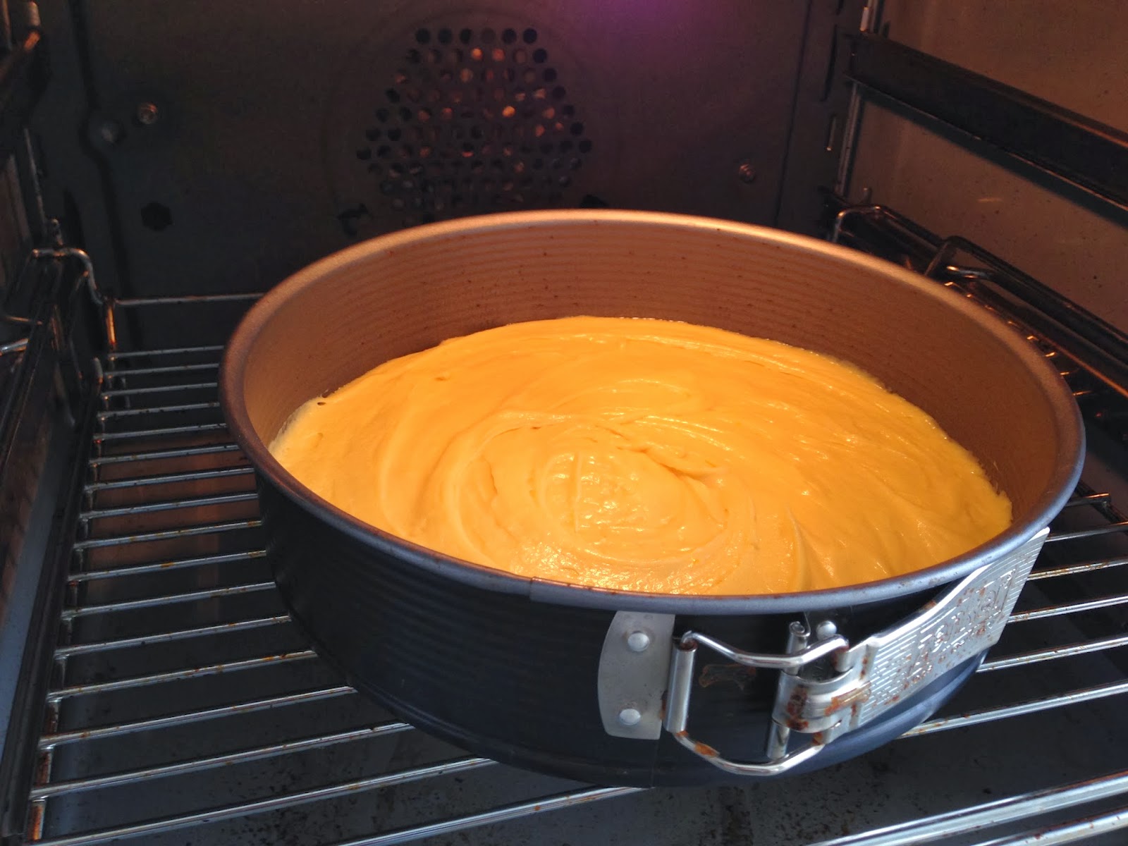 Den Teig gebt ihr in eine gefettete Springform und lasst ihn im vorgeheizten Backofen bei 180 Grad ca. 30 Minuten backen. Danach in der Form abkühlen lassen.