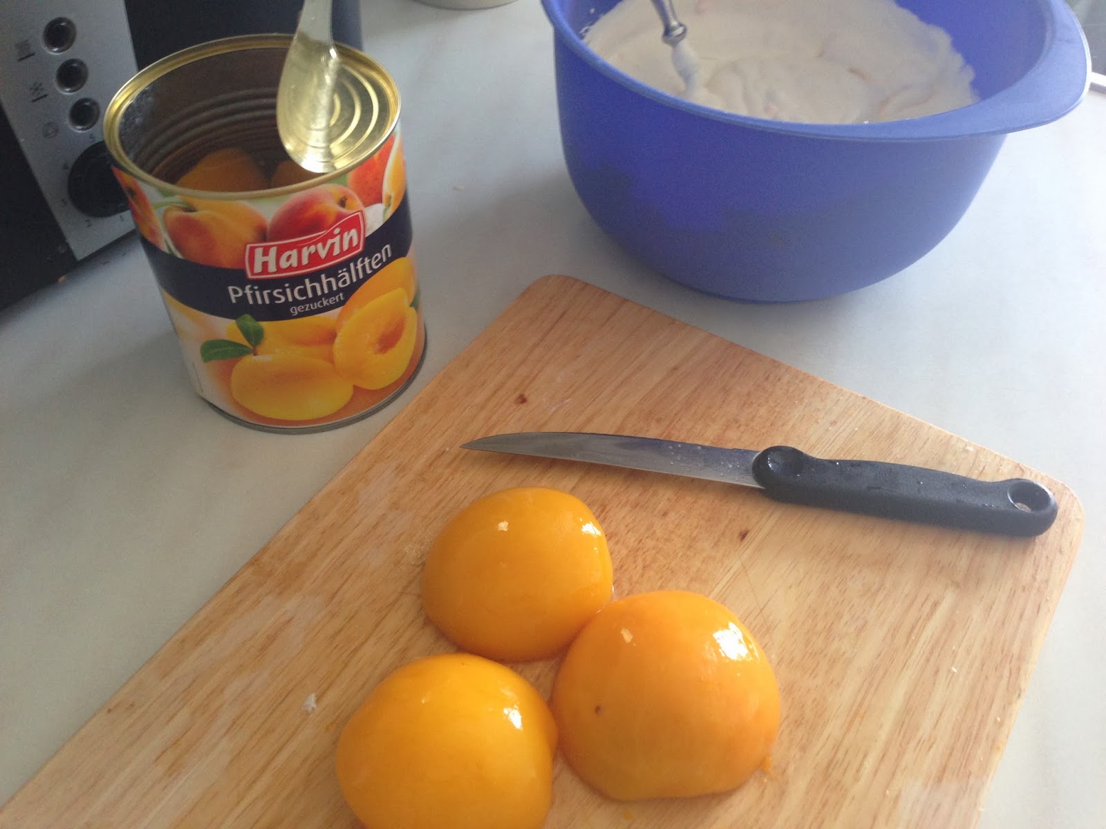 So jetzt aber wirklich: Wir backen heute einen Mandarinen Pfirsich Schmand Kuchen!