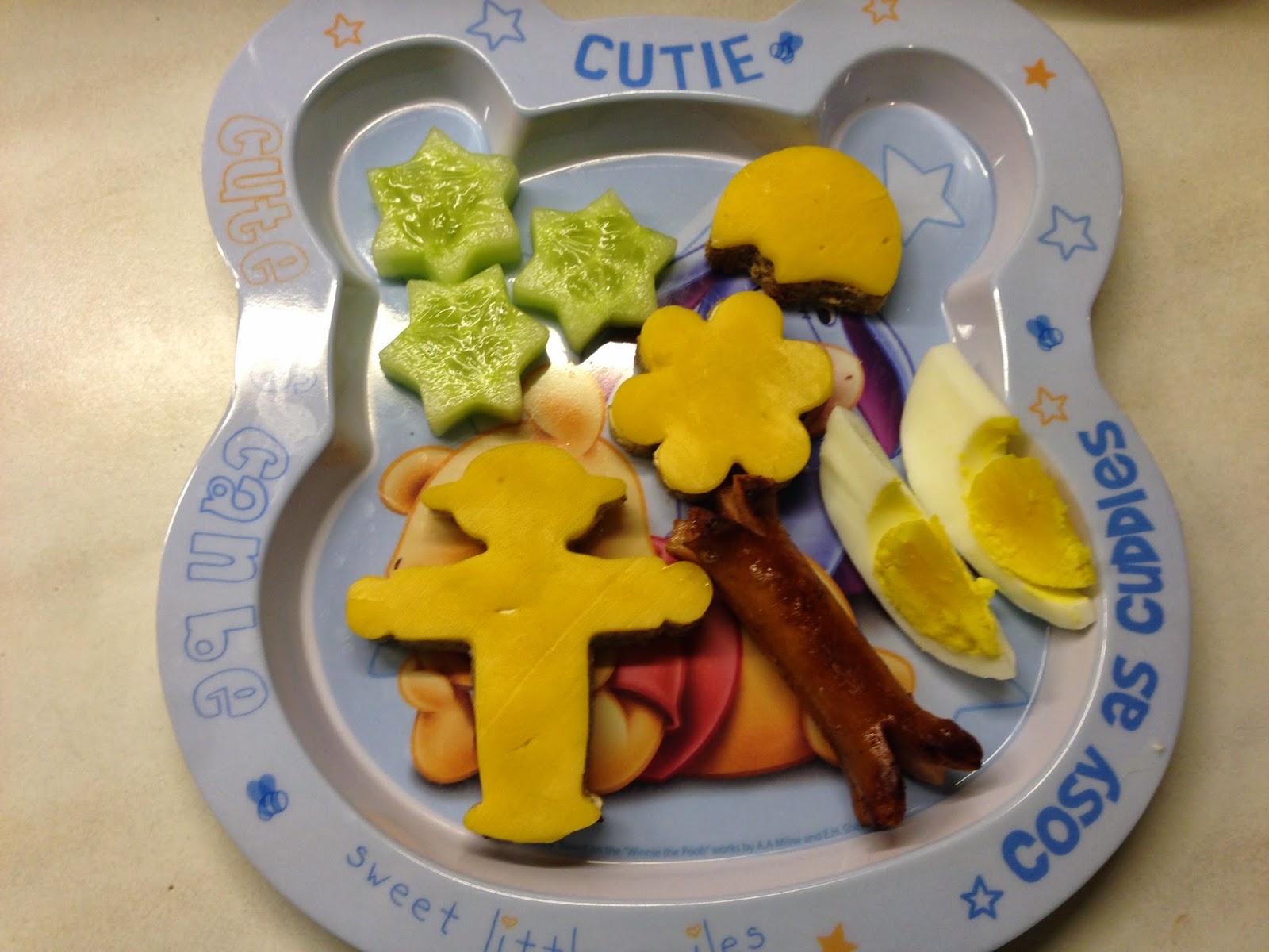 Gegessen: Waffeln, viel Gegrilltes, Italienischen Nudelsalat, Nudeln mit Tomatensoße, Bratwurst mit Kartoffelbrei und Bohnen, Vanilleeis, Osterkekse, Bob Kuchen, lustige Brot- und Gemüseformen