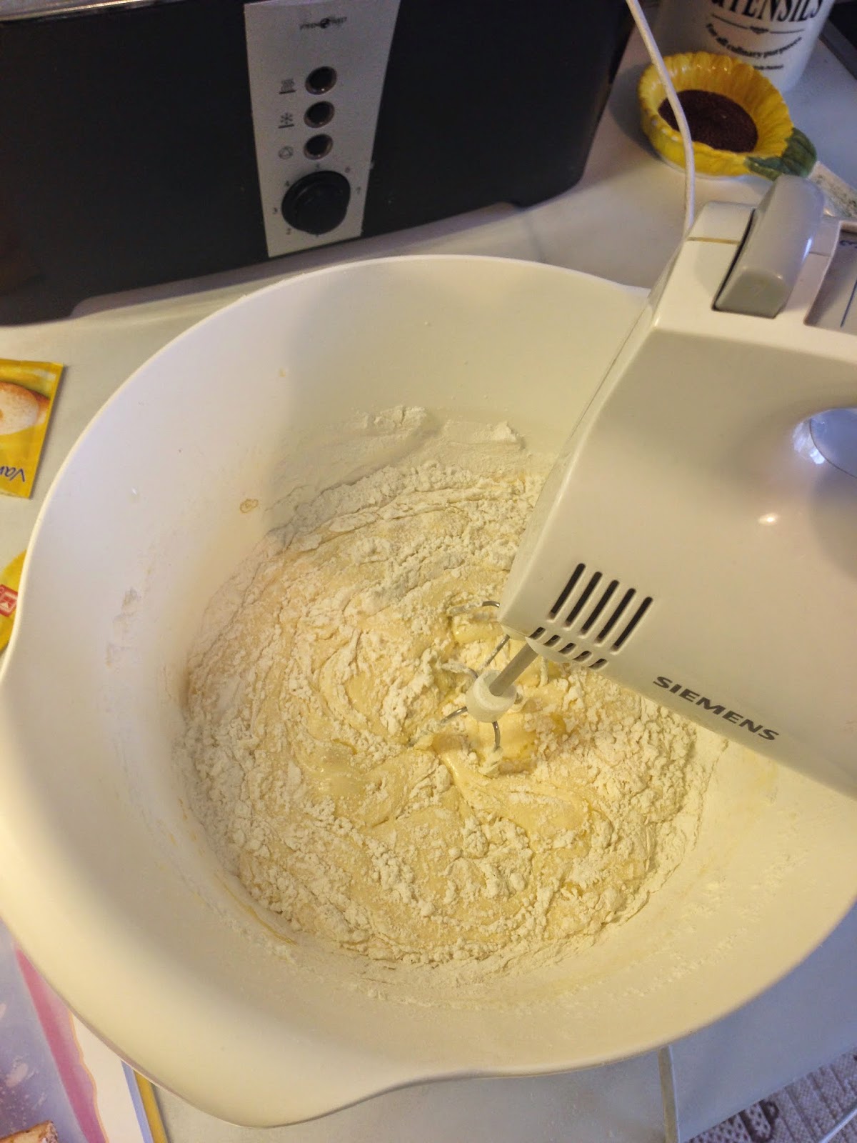 So nachdem du jetzt wahrscheinlich die Hälfte vom Teig weggelöffelt hast, hörste uf mit Naschen.