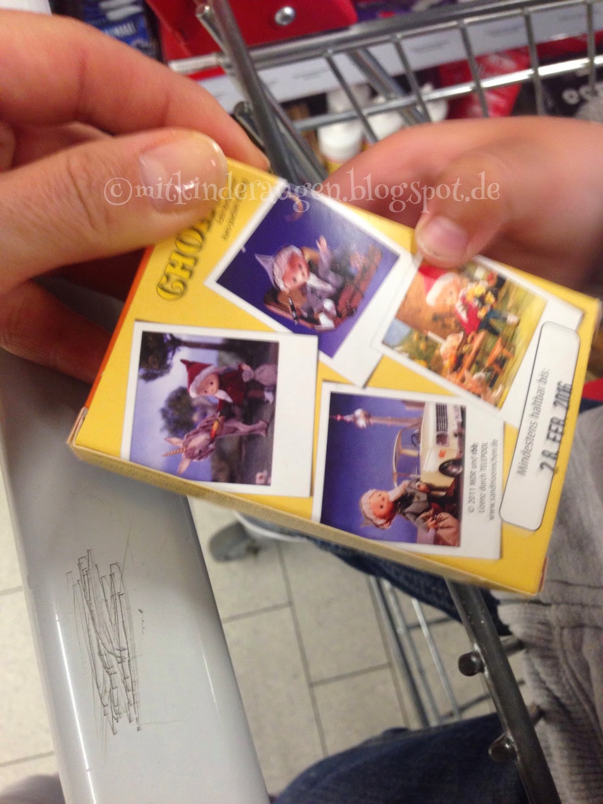 Mit Kinderaugen betrachtet, finde ich es super toll, dass auf der Sandmann Schoki der Sandmann mit dem Fernsehturm zu sehen ist. Ich mag den Fernsehturm ja so doll gern.