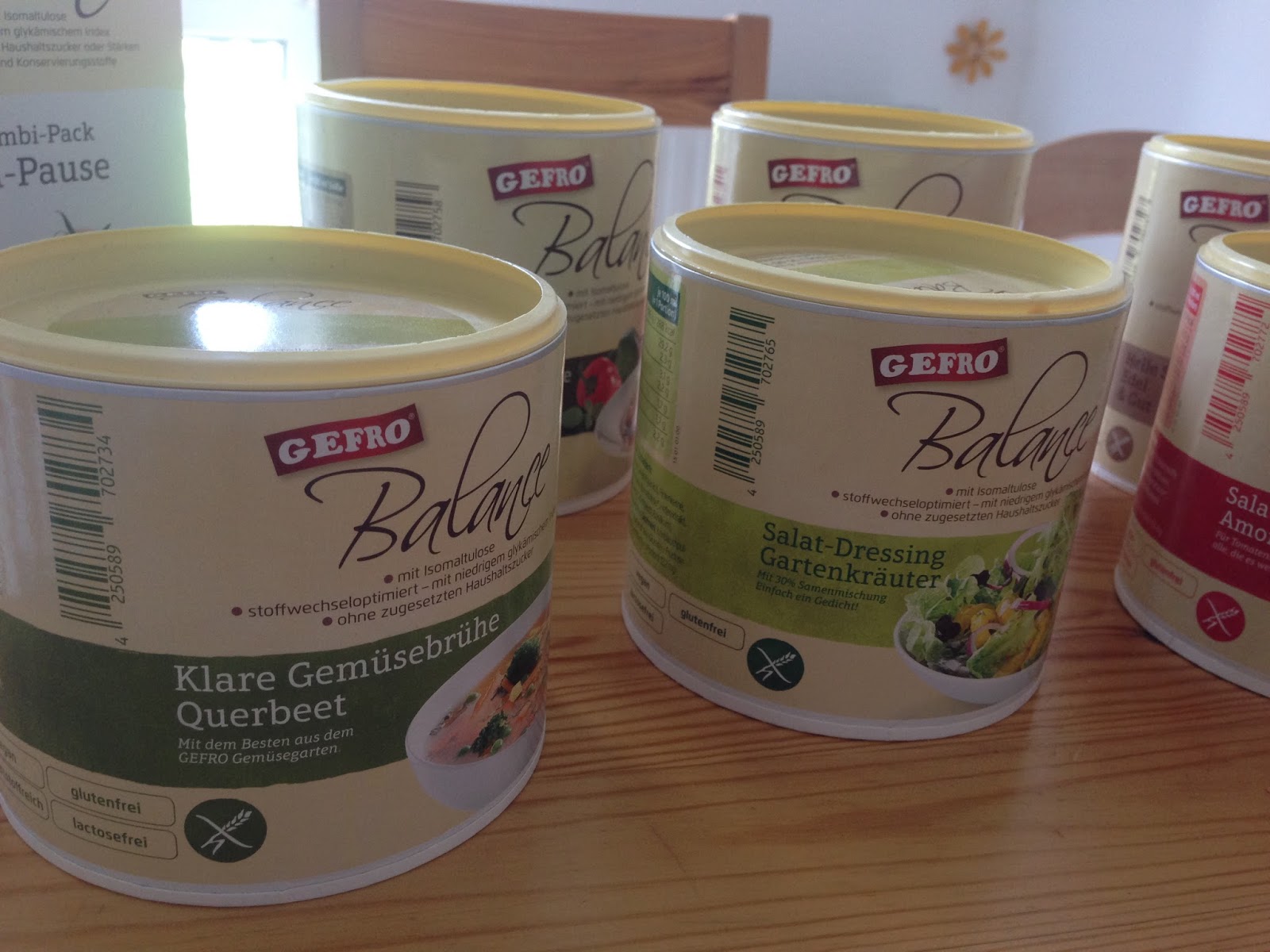 Soweit so gut. Zum Tetsen erhielten wir sieben Produkte aus der GEFRO Balance Linie: Eine Packung mit drei Suppen, zwei verschiedene Salat Dressings (Gartenkräuter und Amore Pomodore), eine klare Gemüsebrühe und drei verschiedene Soßen (hell, dunkel und Tomatensoße). Auf allen Produkten steht die Zubereitung drauf, die sehr simple ist.
