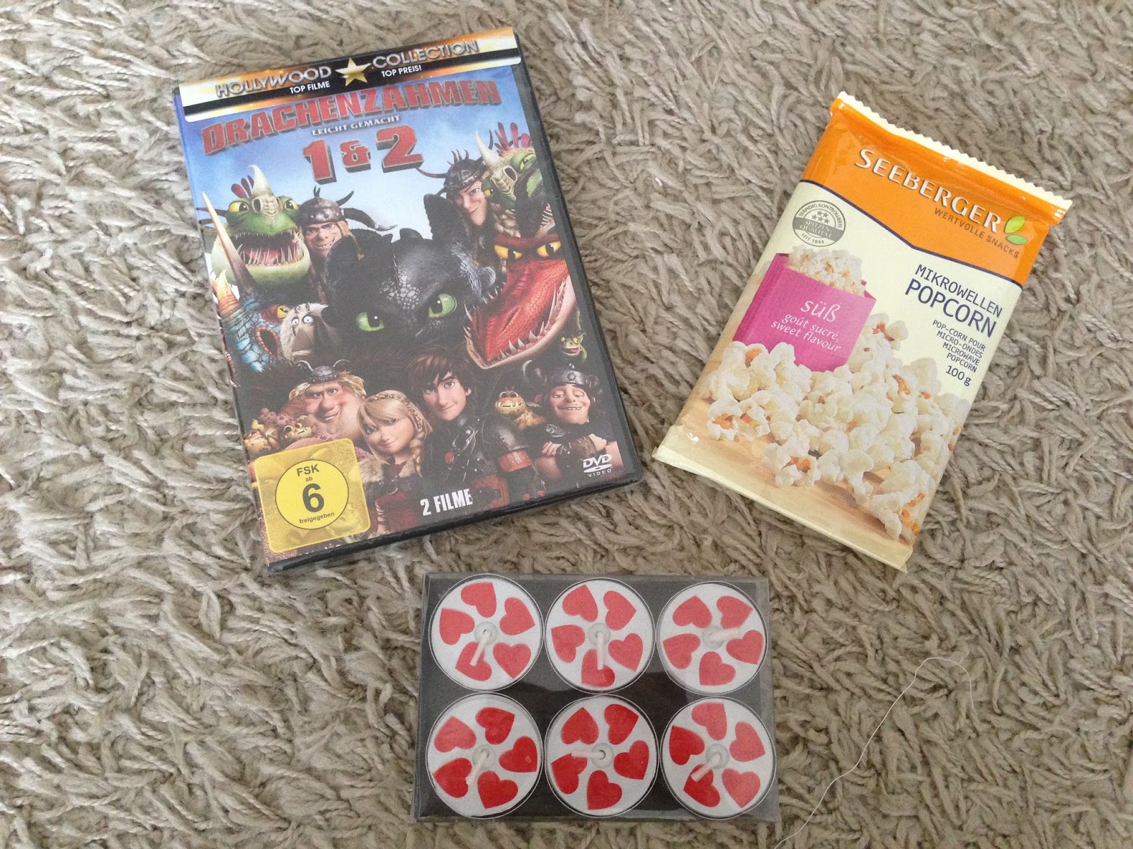 Und da ich euch alle so mag teile ich das Paket natürlich mit euch. Gewinnen könnt ihr die Filme „Drachenzähmen leicht gemacht 1 und 2“, tolle kleine Teelichter und eine Packung Popcorn.