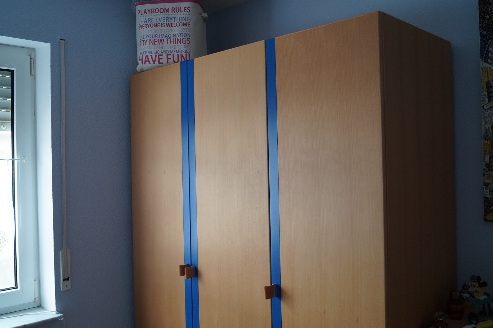 haben wir am Kleiderschrank Akzentleisten an der Tür im selben Farbton. Das