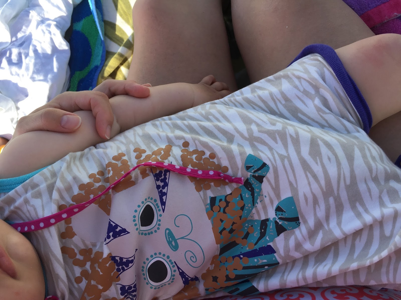 Nach dem Baden wird gestillt und dann schläft die Mini Chefin ein. Geht doch nüscht über ein Nickerchen mit frischer Meeresluft. Der Kurzarmstrampler ist von Petit Beguin. Auch von limango. Da ich den so toll finde habe ich hier in den USA noch ganz viele ähnliche gekauft. Die sind super für den Sommer. Unseren gibt es leider nicht mehr, aber es gibt viele tolle von Olive & Moss.