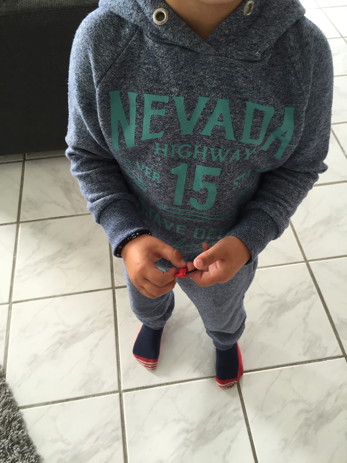 Der Mini Chef in seinem liebsten Sportanzug. Der Abzug ist von Zeeman. Ich wurde schon mehrmals danach gefragt.