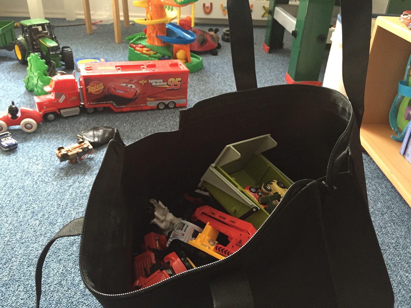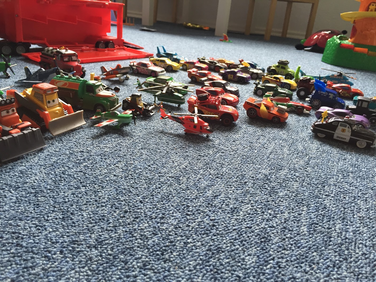 Der Mini Chef baut derweil seine Cars und Planes Fahrzeuge auf.