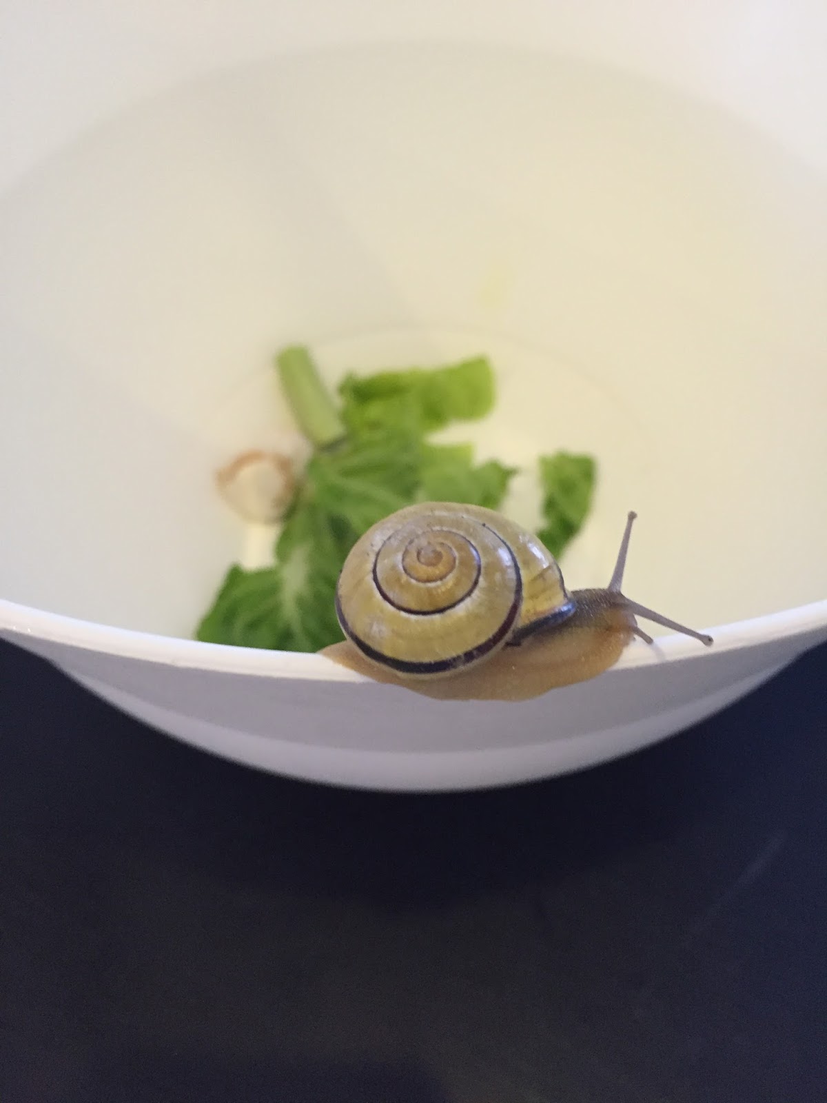 Ich stelle also fest: Mit Kinderaugen betrachtet, finde ich die Schnecke so toll. Wir haben sie aber wieder in den Garten gesetzt, aber am liebsten hätte ich sie behalten.