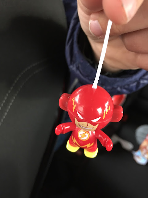 Wir holen den Mini Chef vom Kindergarten ab und fahren für´s Abendbrot einkaufen. Wir entdecken Ü-Eier mit Superhelden Figuren. Da MUSS natürlich eins mit und wir haben sogar Glück, denn Flash ist drin.