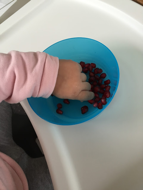 Zuhause naschen wir Granatapfelkerne. Im Vergleich zum Mini Chef liebt die Mini Chefin Obst.