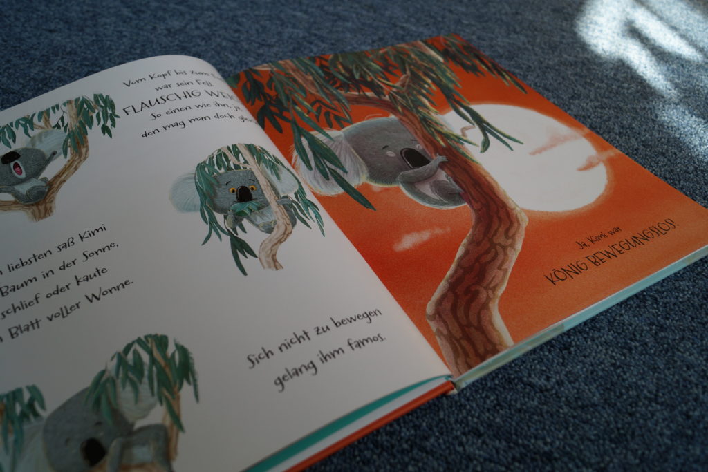 Viele Kinder vertrauen auf Altbewährtes und haben Probleme mit Veränderungen. So geht es auch Kimi Koala, der seinen geliebten Eukalyptusbaum noch nie verlassen hat, da er hinter jeder Veränderung eine Gefahr vermutet. Alle Tiere versuchten Kimi dazu zubewegen, mal von seinem Baum runterzukommen. Aber Kimi traute sich nicht und bleibt lieber da wo er ist.