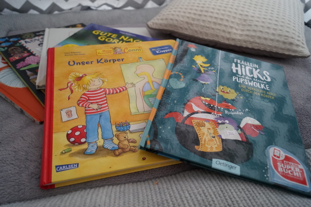 Bücher über den Körper sind hier im Hause Mini Chef und Mini Chefin derzeit sehr beliebt. Der Mini Chef erklärt und benennt vieles bereits. Die Mini Chefin erfreut sich immer an den gezeigten Hinterteilen.