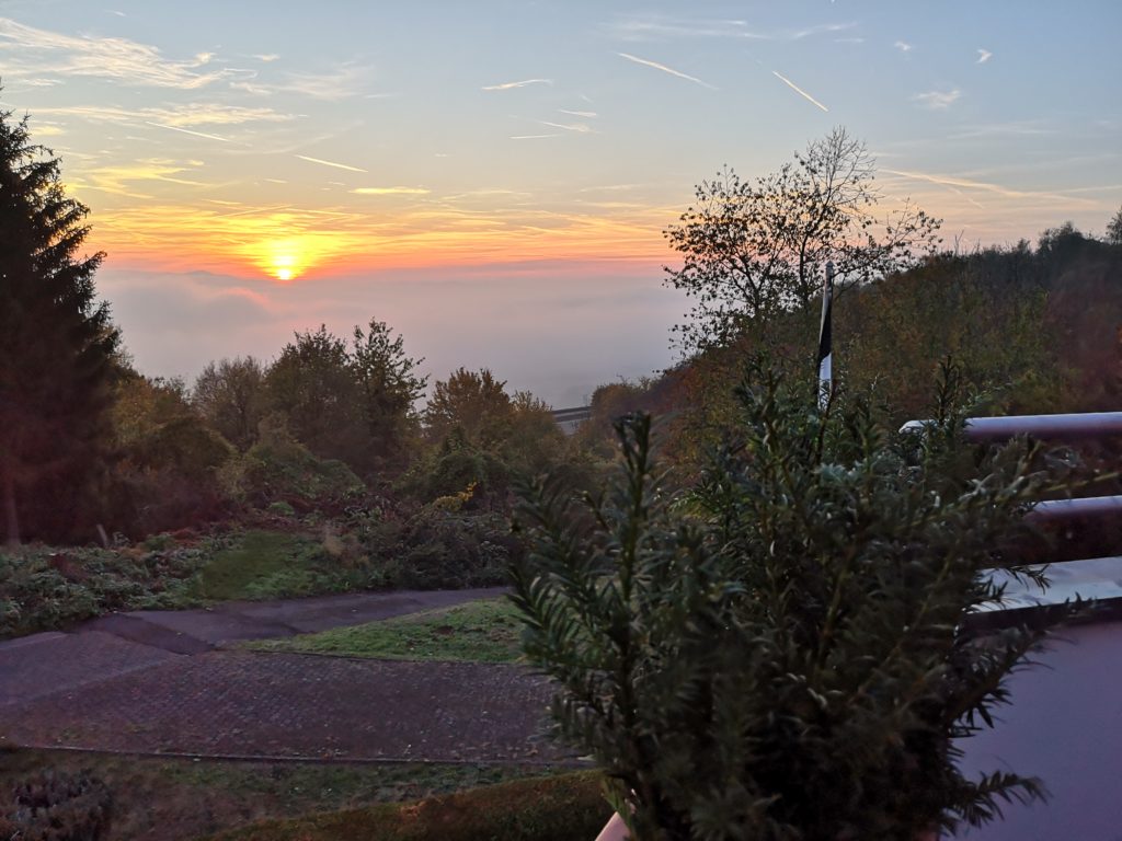 Am späten Nachmittag verschwindet der Rhein im Nebel. Das finden die Kinder sehr spannend.